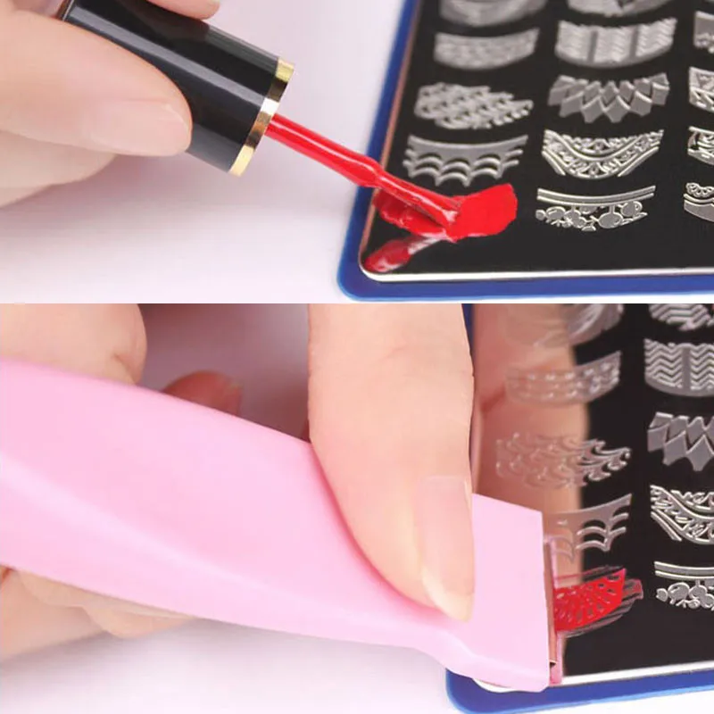 прикрепляются к ногтевой пластине, заменяя геометрические узоры, полосы, нарисованные