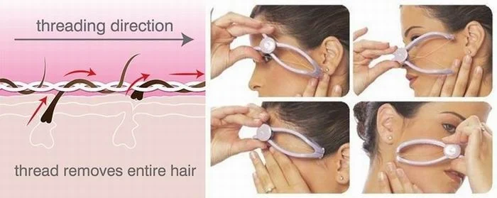На протяжении веков нити использовались для удаления волос на лице с помощью простой хлопчатобумажной нити, которая быстро захватывала и выдергивала волосы с корнем. Это отличный способ очистить и придать форму бровям, но его также можно использовать для быстрого удаления любых других волос на лице; от подбородка до лба!