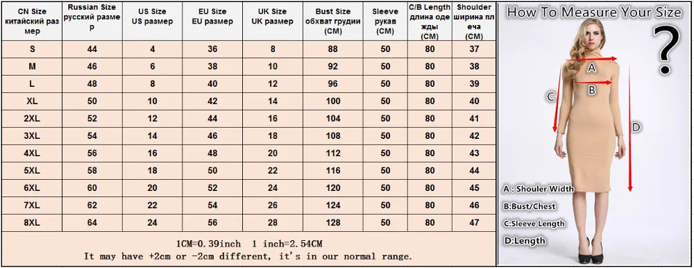 | Бюст | 32-33 | 33-34 | 34-35 | 35-36 | 37-38 | 38-39 | 40-41 | 42-43 | 44-45 | 46-47 | 48-50 | 51-53 | 54-56 |